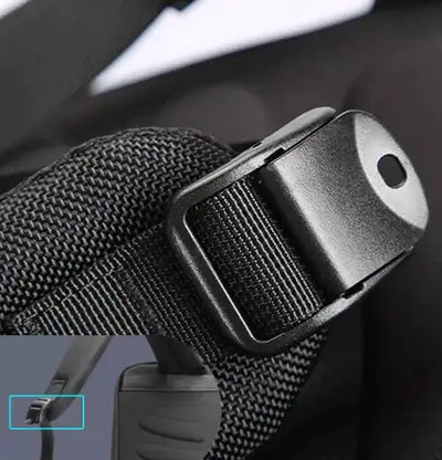 The shoulder strap buckle locks your shoulder strap in place and easily unlocks when you need to adjust it.