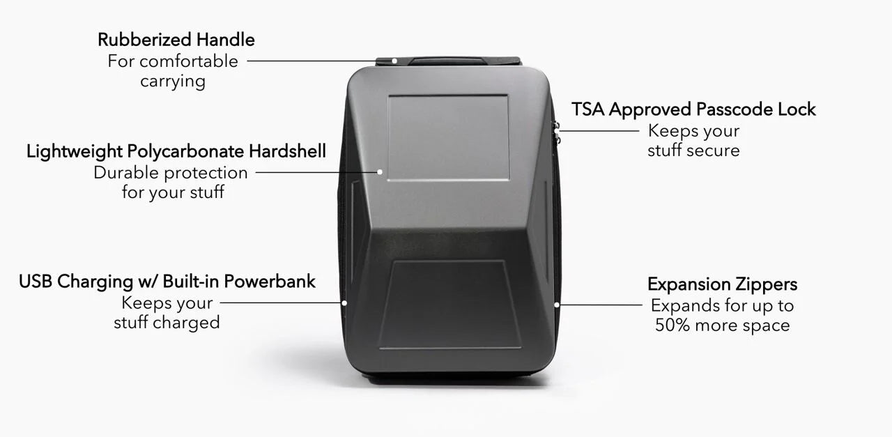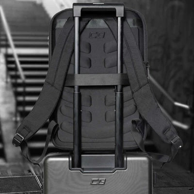 This backpack features a polycarbonate hardshell case that is waterproof and ballistic nylon fabric that actively repels water, ensuring your gear stays dry and protected in any weather.