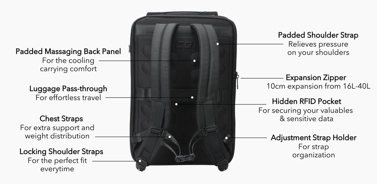 The luggage pass-through allows you to conveniently strap the travel pack to your luggage handle while traveling with rolling luggage.